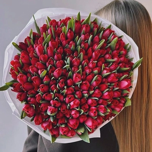 Букет из 101 красного тюльпана "MAKE A WISH"