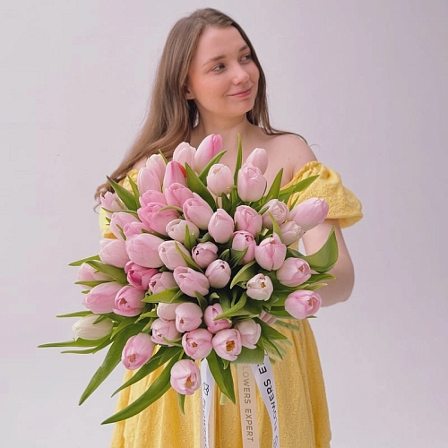 Размер бутонов и высота могут незначительно отличаться от фото. В вазе тюльпаны продолжают расти и постепенно раскрываются.