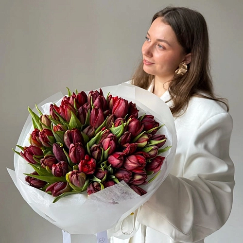 Букет из 51 пионовидного красного тюльпана "RED PRINCESS"