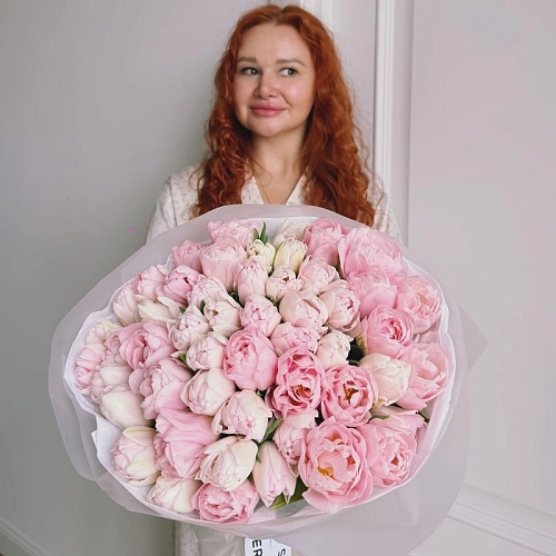 «DREAMER & FOXTROT» — впечатляющий букет из 51 пионовидного розового тюльпана микс. Пышные, насыщенные бутоны создают гармоничное сочетание оттенков и объём, наполняя композицию лёгкостью и романтичной свежестью. Этот букет станет ярким и трогательным подарком, который передаёт внимание, искренние эмоции и тёплые чувства, делая момент по-настоящему запоминающимся.