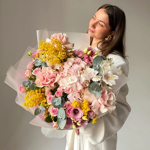 В связи с высокой нагрузкой 7 и 8 марта 2024 г. некоторые цветы могут закончиться. В таком случае, мы заменим цветы в букете на максимально схожие по цвету и стилистике без дополнительного согласования с вами.
