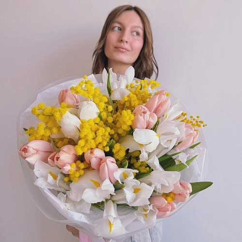 В связи с высокой нагрузкой 7 и 8 марта 2024 г. некоторые цветы могут закончиться. В таком случае, мы заменим цветы в букете на максимально схожие по цвету и стилистике без дополнительного согласования с вами.