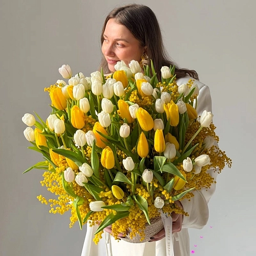 В связи с высокой нагрузкой 7 и 8 марта 2024 г. некоторые цветы могут закончиться. В таком случае, мы заменим цветы в букете на максимально схожие по цвету и стилистике без дополнительного согласования с вами.