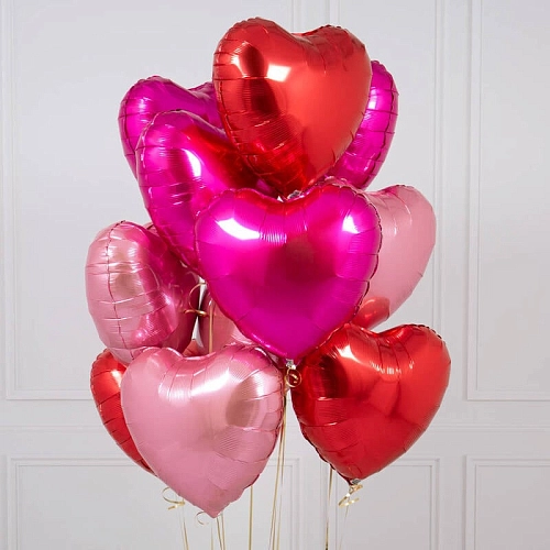 Набор из 11 фольгированных шаров в виде сердца "PINK MIX"